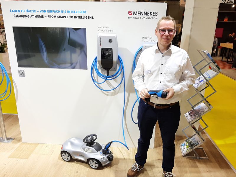 Ich komme aus der Business Unit eMobility. Zu mir kamen viele Elektroinstallateure, mit denen wir schon lange zusammenarbeiten, aber auch viele neue, die wir noch nicht kannten. Außerdem besuchten viele Fachbesucher aus dem Elektro-Fachgroßhandel unseren Stand.